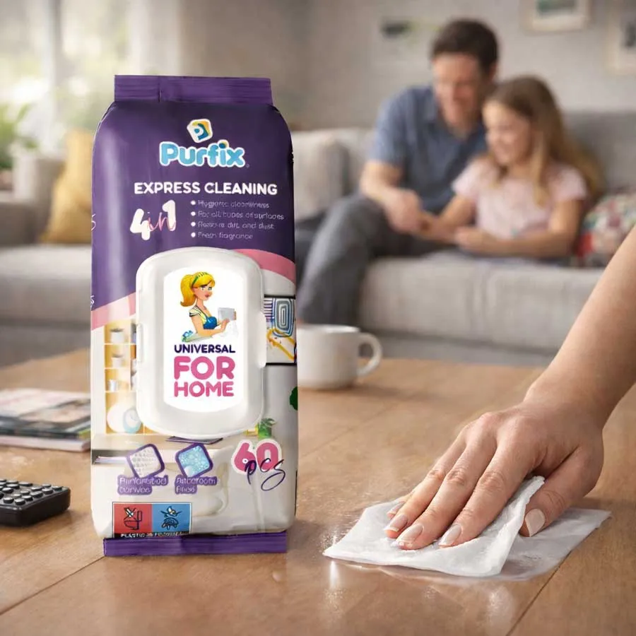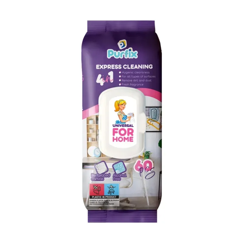 Purfix Express Cleaning 4in1 – șervețele umede multisuprafețe, 60 buc, cu capac, fără alcool, parfum fresh
