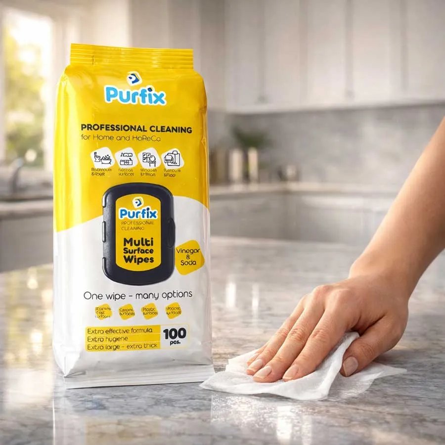 Te-ai trezit vreodată că trebuie să cureți urgent petele de pe masă, aragaz sau toaletă și ai realizat că detergentul stă în dulap? Șervețelele PURFIX sunt mereu pregătite să vină în ajutor — fără clătire, fără efort, cu un ambalaj flip‑top care păstrează umiditatea.